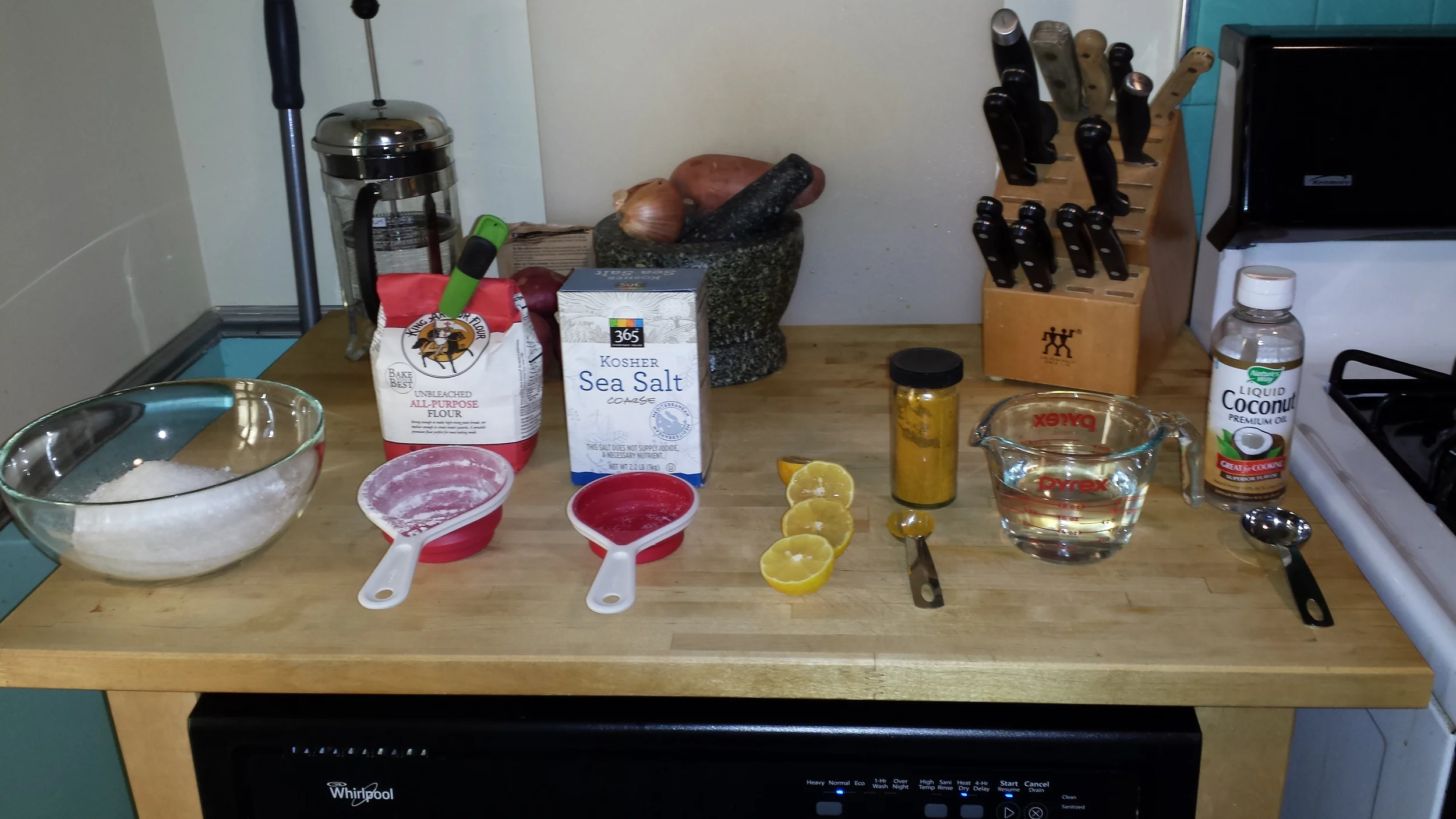 Things start off really well. My daughter is sound asleep for her afternoon nap. I go into to the kitchen, Google "turmeric playdough" and find a great recipe. Then I see that this recipe calls for cream of tartar, which I do not have. My memory flashes to a conversation I had with my mother earlier this week about making playdough and the importance of this specific ingredient. "Oh well," I think, in true daughter fashion, "I'm sure I can still make it work." Instead of finding a new recipe, I decide to just go for it, and Google "substitutes for cream of tartar in home made playdough". I find that I can use lemon juice, which I have, so I get out my ingredients and get started.