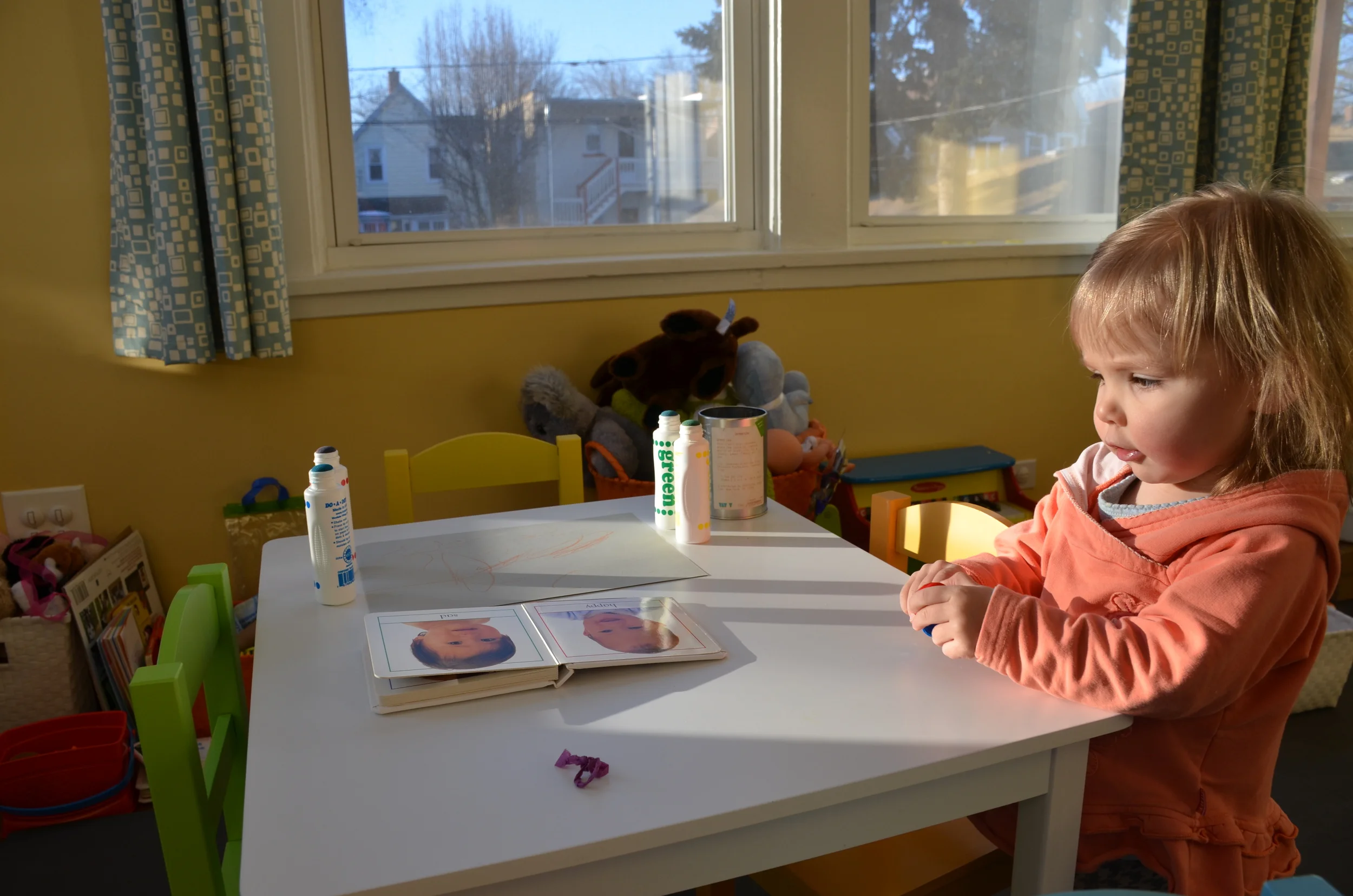 I admit it, I was worried. I assumed I would walk into my daughter's play room to see dot paint decorations all over the play kitchen, the chairs, maybe the walls, or the stuffed animals. I peeked around the door and this is what I saw: